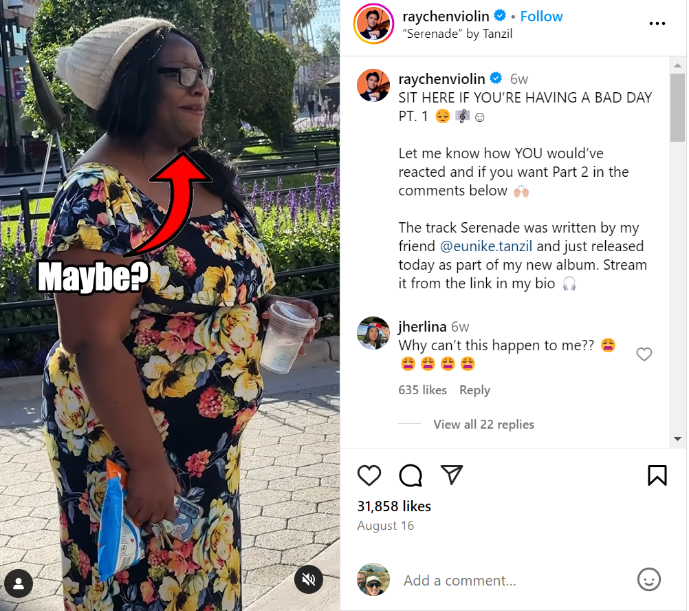 Sit Here if You're Having a Bad Day Pt. 1 - a relatable post because Ray, a famous violinist, is initially ignored (who can't relate to that?) and eventually brightens someone's day.